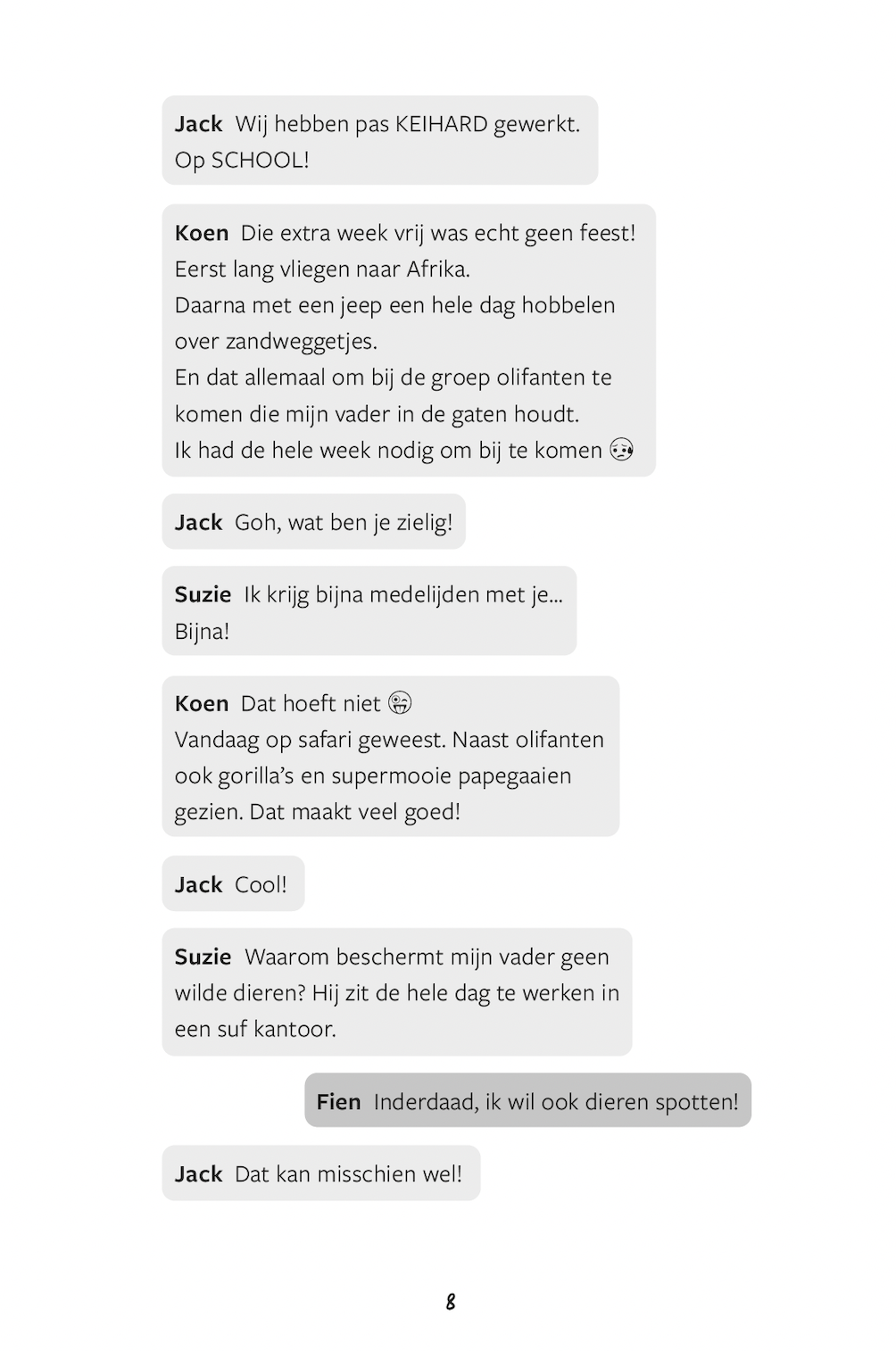 Het is vakantie! Vanuit Afrika stuurt Koen jaloersmakende berichtjes over olifanten, gorilla’s en kleurrijke vogels. Fien, Suzie en Jack willen ook iets leuks doen en besluiten een dagje naar het dierenpark te gaan.